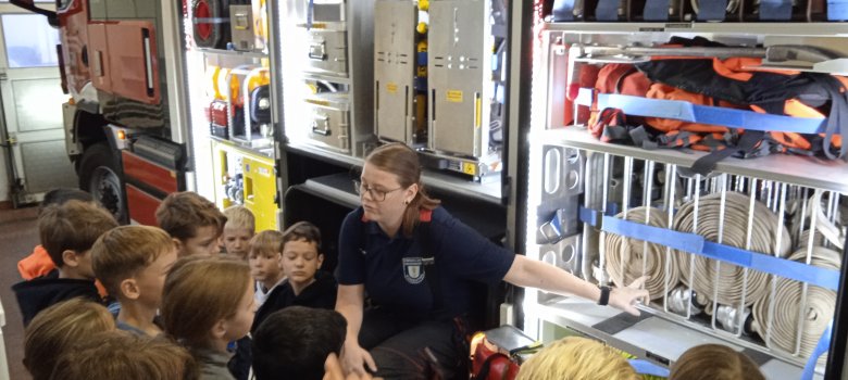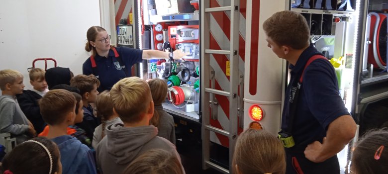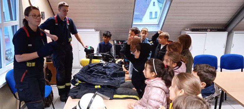 Im Anschluss an die Unterrichtseinheit „Feuer und Feuerwehr“ im Sachunterricht der Grundschule, stand das Lernen außerschulischen Lernort, Feuerwehrgerätehaus Weidenthal, mit Brandschutzerzieherin und Jugendwartin Ann-Kathrin Jacob und Feuerwehrmann Emmanuel Scholl auf dem Programm.