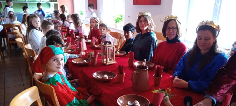Zur Mittagszeit war im „Rittersaal“ der Jugendherberge alles zum zünftigen Rittermahl bereit. Mit Tonschalen, -bechern und -krügen eingedeckte Tafel lud die erschöpften Knappen zum Essen ohne Besteck ein. Zur Unterhaltung der Königinnen und ihrem Gefolge gaben sich alle Kinder Mühe bei, Liedern, Gedichten, Witzen, Sporteinlagen und Grimassen. Nach einer Phase „Zeit zur freien Verfügung“ starteten alle zu einer ausgiebigen Burgrallye. Die Teams mussten viele, knifflige Aufgaben rund um die Burg und die Ausrüstung der Ritter lösen. Viele Stunden voller Abenteuer und Aktionen lagen hinter den Knappen und so erfolgte am späten Nachmittag der ersehnte Ritterschlag im feierlichen Rahmen.