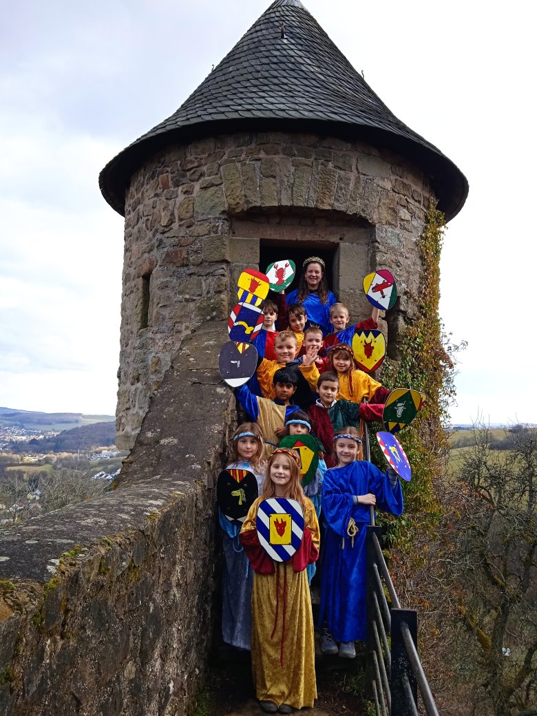 Ein weiteres Highlight im Jubiläumsjahr - 125 Jahre Schulgebäude Weidenthal - stand auf dem Programm: Dank des Gewinns einer Spende der Sparkasse Rhein-Haardt 2024 durften in diesem Jahr gleich drei Klassen zu einem besonders günstigen Preis mit Aktionsprogramm auf Klassenfahrt! Vom 25. bis 27. Februar erlebten die sechsunddreißig Schülerinnen und Schüler der Klassen 2 bis 4 der Grundschule Weidenthal das Mittelalter mit all seinen Facetten. Der “edle Herold” nahm sie in bewährter Art und Weise mit auf eine Zeitreise in eine ganz andere Zeit. Dass es nicht immer einfach war, ein Ritter zu sein, konnte die Projektleiterin Claudia Jirka-Köcher auf der Burg Lichtenberg, eine der längsten Burgruinen Deutschlands und die größte der Pfalz, eindrucksvoll vermitteln.
